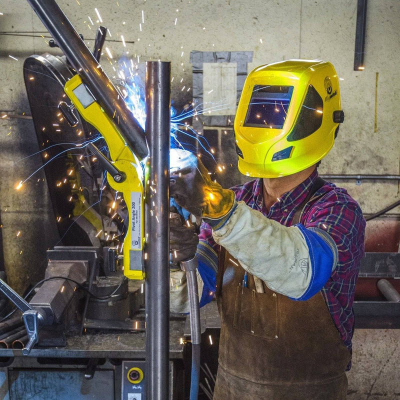 Magswitch Pivot Angle 200 offers a range of angles from 28 degrees to 270 degrees. Switch on and off 97.5 kilograms of magnetic holding force by rotating the black knobs. Two sides of the tool magnetize when turned on and can be secured to a table or wall to hold a fixture in place.